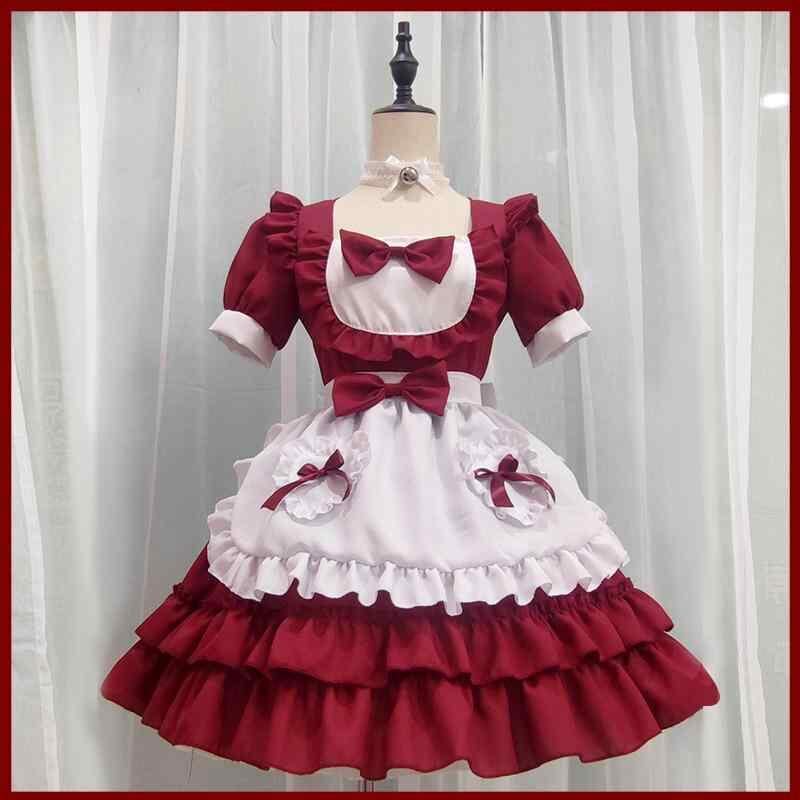 ワンピース レディース 女性用 メイド服 ロリータ風 メイドコスプレ アニメ風 二次元スタイル 仮装 コスプレ イベント衣装 日常使い 普段使い ポリエステル 綿混素材 赤 レッド かわいい ガーリー スウィート カジュアル ドレス