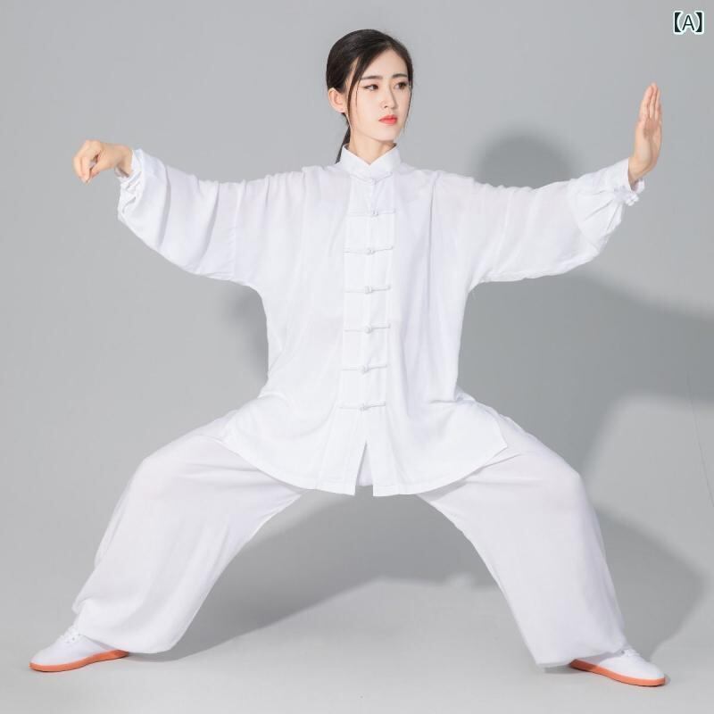 太極拳ウェア 男女兼用 長袖 綿素材 コットン 上下セット 夏用 練習着 稽古着 フィットネス 演武服 演舞服 スポーツ トレーニング 吸湿性 通気性 白 カーキ グレー 黒 青 ピンク