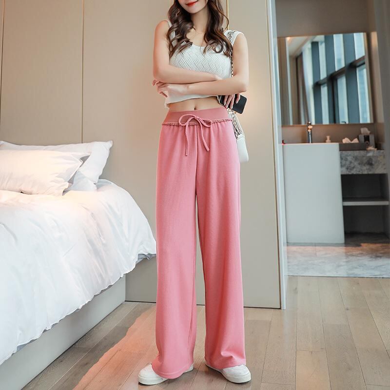 ・カテゴリ: カジュアルパンツ ・スタイル: 日韓カジュアル ・パンツスタイル: ワイドパンツ ・フィット: ゆったり ・丈: ロング丈 ・ウエスト: ハイウエスト ・主な素材: スパンデックス ・対象: レディース ・カラー展開: グレー、ブラック、ブルー、ピンク、ベージュ ・サイズ展開: 小サイズ(目安体重40-57.5kg)、フリーサイズ(目安体重45-67.5kg)、大サイズ(目安体重55-75kg)