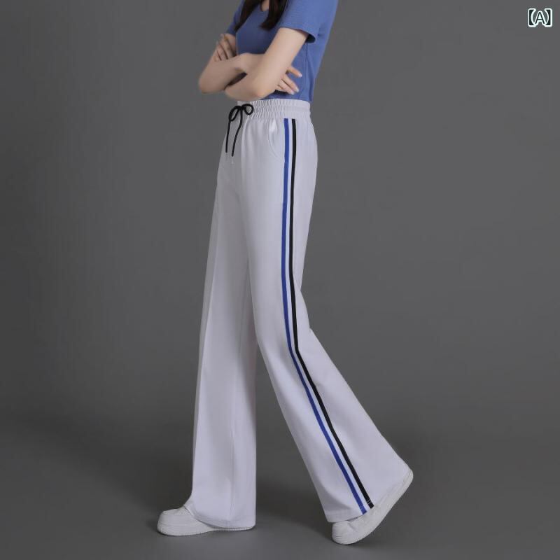 ワイドパンツ レディース 白 ハイウエスト ゆったり 微フレア ロング丈 ストライプ柄 再生繊維 綿混 ドレープ感 上質感 ストレッチ 通勤 オフィス カジュアル