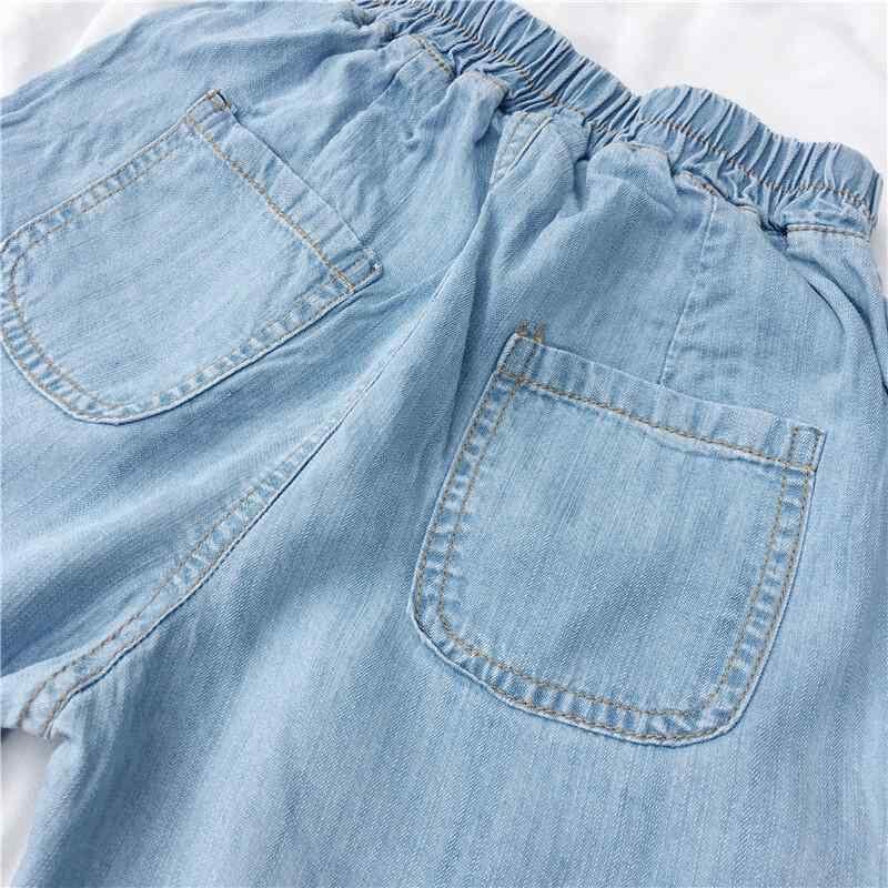 デニムパンツ 男の子 キッズ ジュニア 九分丈 クロップド丈 ハイウエスト ウエストゴム 綿 コットン 再生繊維 無地 柔らかい肌触り 韓国風 カジュアル 春夏秋 ボトムス ライトブルー ダークブルー