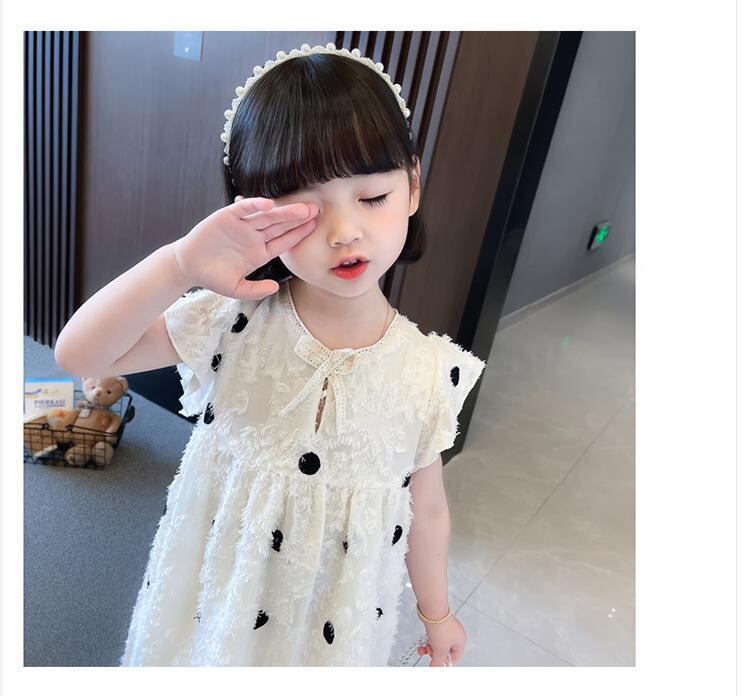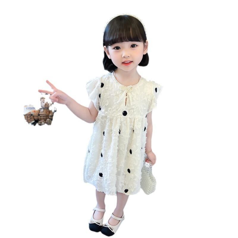ワンピース 女の子 キッズ 子供服 ベビー かわいい 韓国風 ドット柄 水玉 ジャンパースカート ティアードスカート プリンセスライン コットン 綿素材 夏 お出かけ 通園 普段着 ベージュ アイボリー