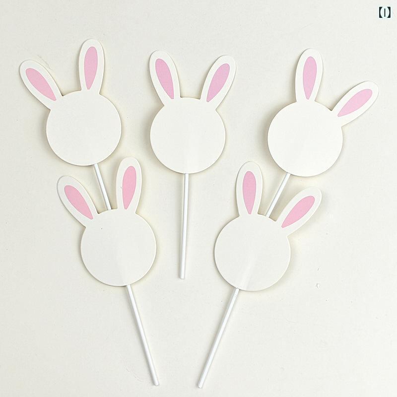 ケーキトッパー ケーキピック かわいい ウサギ ラビット 誕生日 記念日 デコレーション メッセージカード 文字入れ 名前入れ 手書き ストライプ 四角 丸 ひし形 ペーパー 飾り付け ピンク ブルー ゴールド