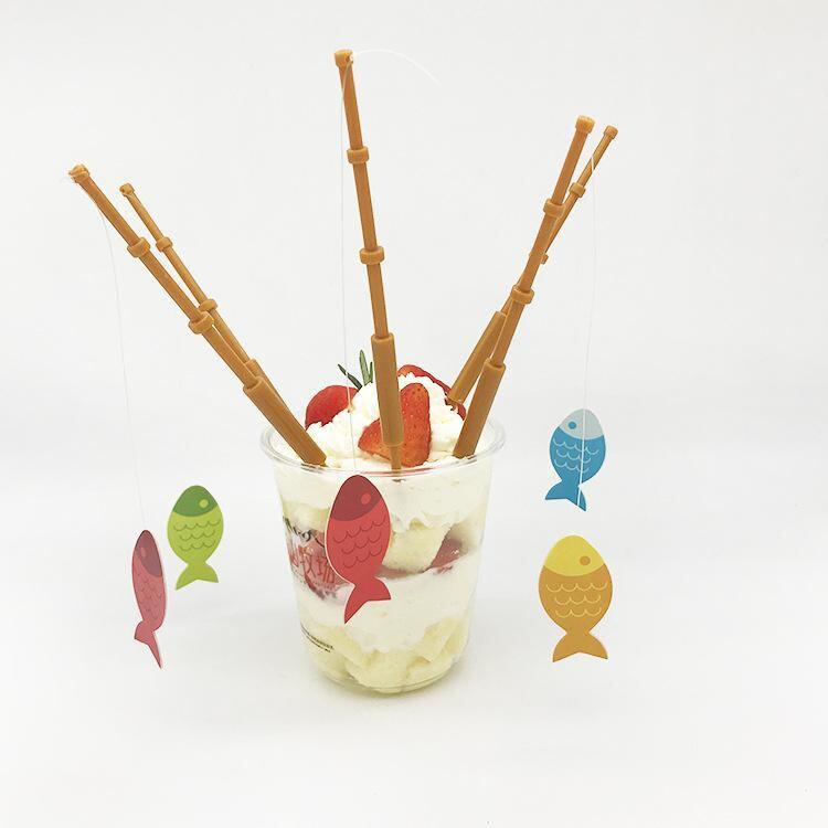 ケーキトッパー ミニ釣竿 フィッシングロッド 誕生日パーティー バースデーケーキ飾り イベント お祝い かわいい プラスチック製 小型 カラフル ケーキピック デコレーション小物