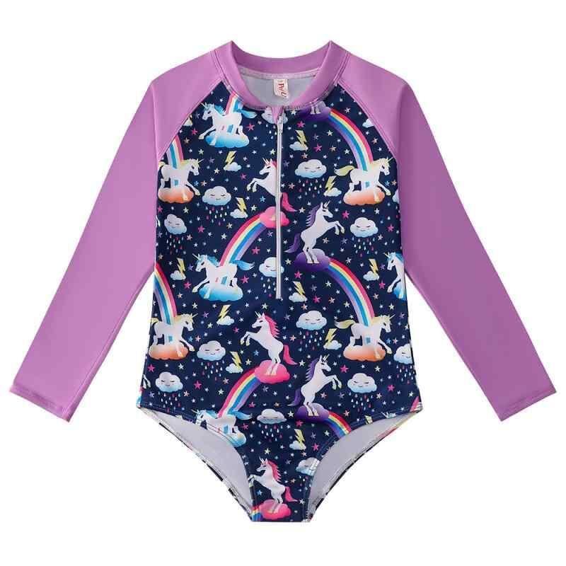 水着 キッズ 女の子 連体 オールインワン 長袖 ユニコーン柄 アニメ柄 かわいい 高弾性 伸縮性 ポリエステル素材 スイミング プール ビーチ 海水浴 アウトドア レジャー