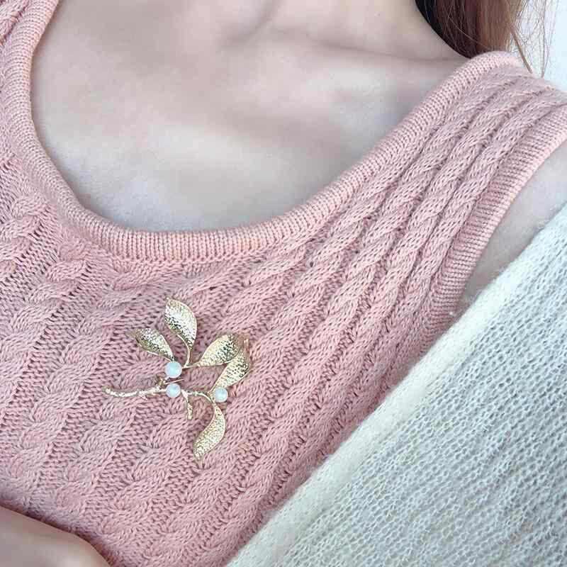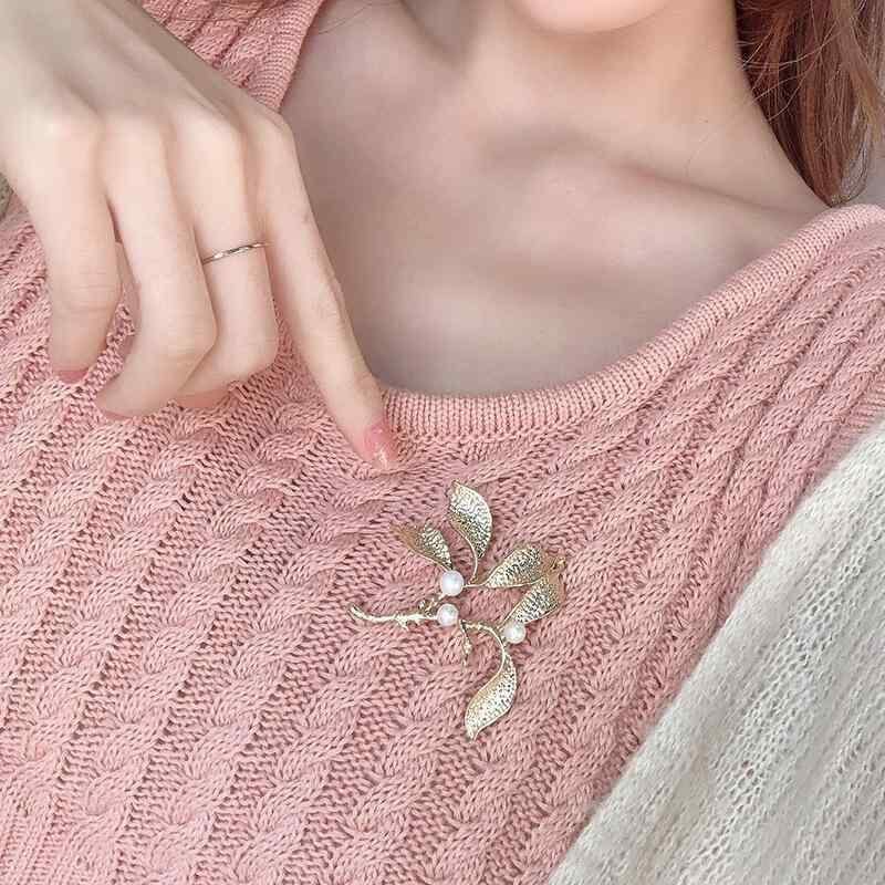 ブローチ レディース 高級感 金色 リーフ 葉っぱ パール 真珠 合金 フォーマル ドレス カジュアル エレガント 上品 気品 オールシーズン アクセサリー