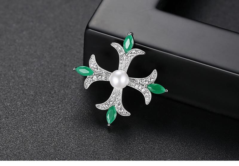 ブローチ レディース エレガント 上品な シンプル クロス デザイン 銅製 ジルコン パール 個性的 高見え アクセサリー ピン