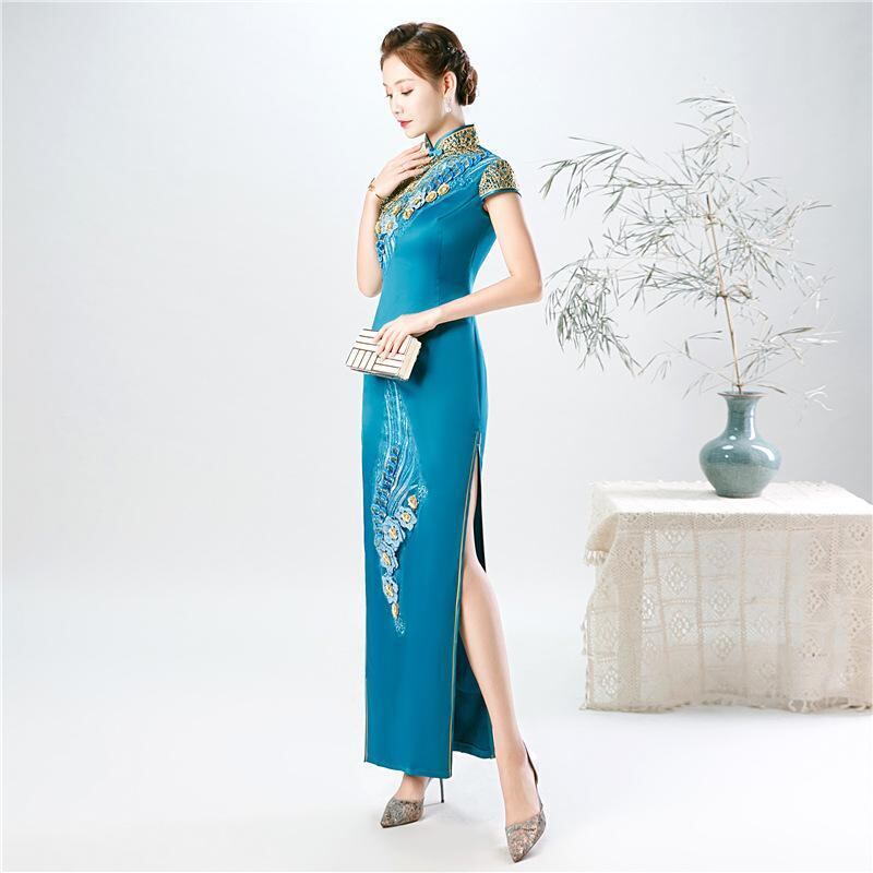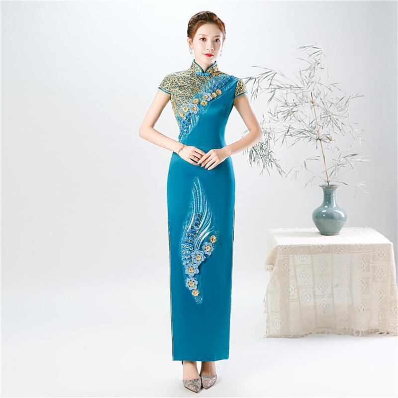 ・カテゴリ: チャイナドレス・主な素材: ポリエステル96%・スタイル: 中国風、立体刺繍、舞台衣装・デザイン要素: メッシュ・チャイナドレス丈: ロング・襟元: スタンドカラー・前開き: ラウンド・スリット: ハイ・カラー展開: スカイブルー、レッド、グリーン・サイズ展開: S、M、L、XL、XXL、3XL、4XL、5XL・対象: 大人・対象性別: 女性