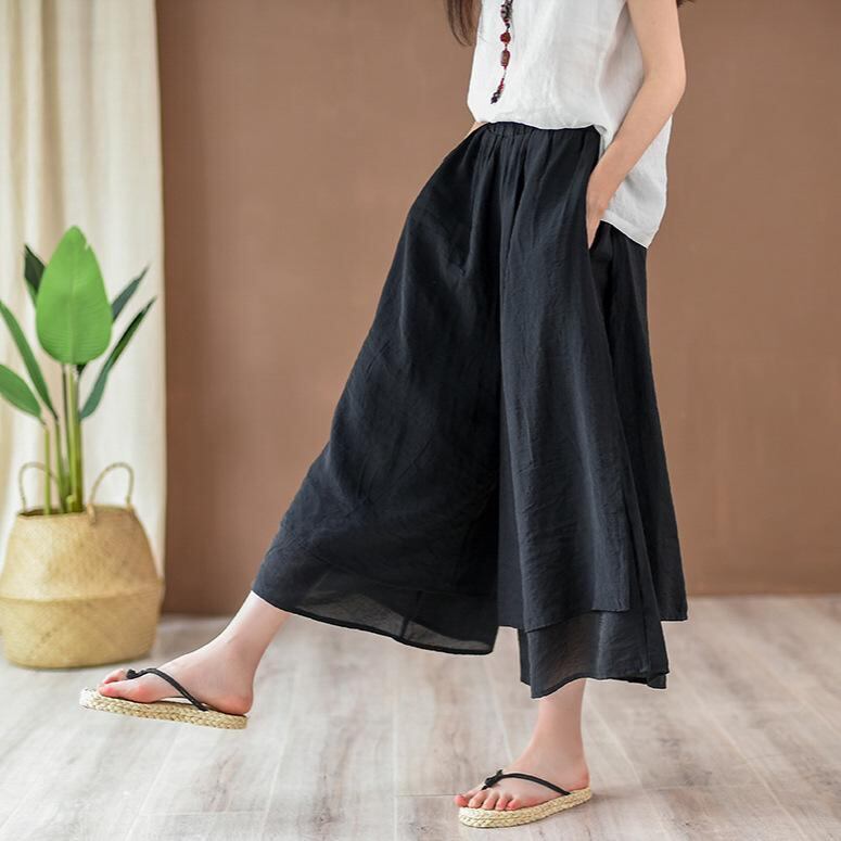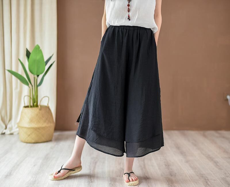 ワイドパンツ レディース 9分丈 ガウチョパンツ スカンツ 無地 レトロ カジュアル ドレープ 薄手 ゆったり 快適 エレガント ミドルウエスト 着回し 万能 普段使い おうち時間