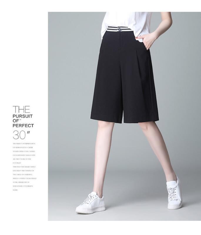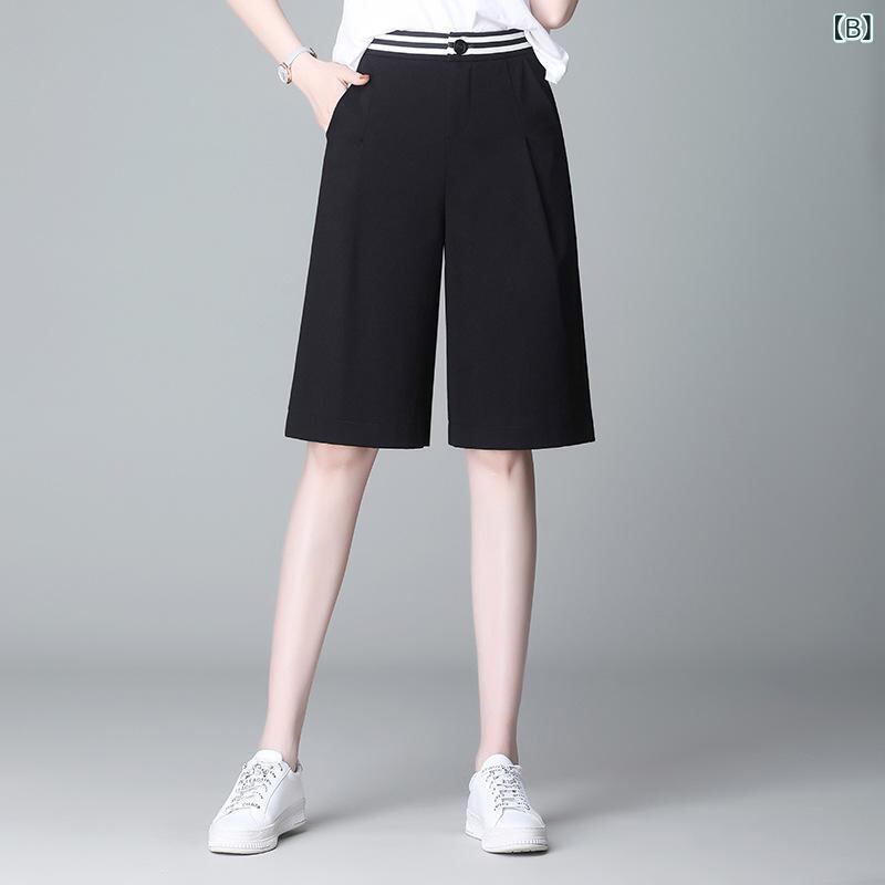 クロップドパンツ レディース ワイド ミドル丈 夏 薄手 ゆったり ストレート ドレープ感 大きいサイズ ハイウエスト 伸縮性 レーヨン混紡 カジュアル ホワイト ブラック ダークブルー