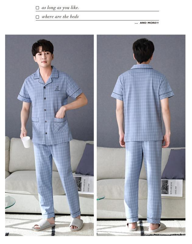 ・カテゴリ: ルームウェアセット・主な素材: 綿100%・スタイル: カーディガン・厚さ: 薄手・襟元: テーラードカラー・パンツ丈: ロング丈・用途: リラックス・対象: メンズ・着用シーン: ルームウェア・サイズ展開: M、L、XL、XXL、3XL、4XL