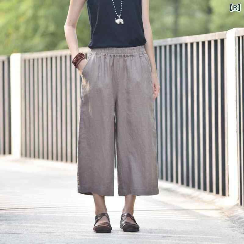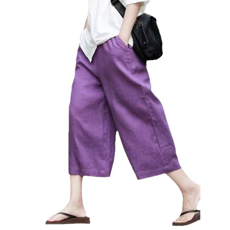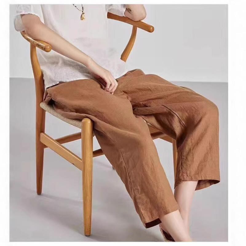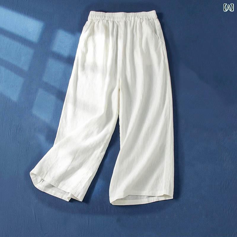 パンツ レディース ワイドパンツ 七分丈 ハイウエスト リネン 麻 大きいサイズ ゆったり 薄手 カジュアル ドレープ感 高級感 ストレート 涼しい 吸湿速乾 通気性 部屋着 リラックス ボトムス 夏 お出かけ 普段使い