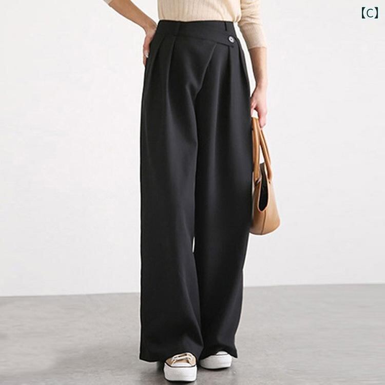 パンツ レディース ワイドパンツ ハイウエスト ルーズシルエット ロング丈 個性的 アシンメトリー ウエストベルトデザイン 綿混 ポリエステル ストリート カジュアル カーキ グレー ブラック ダークブルー