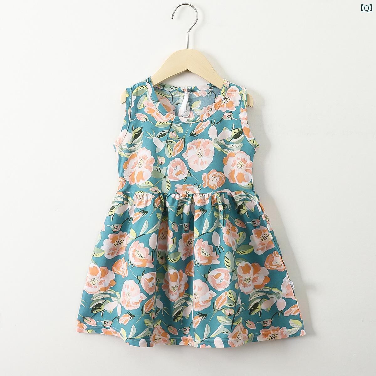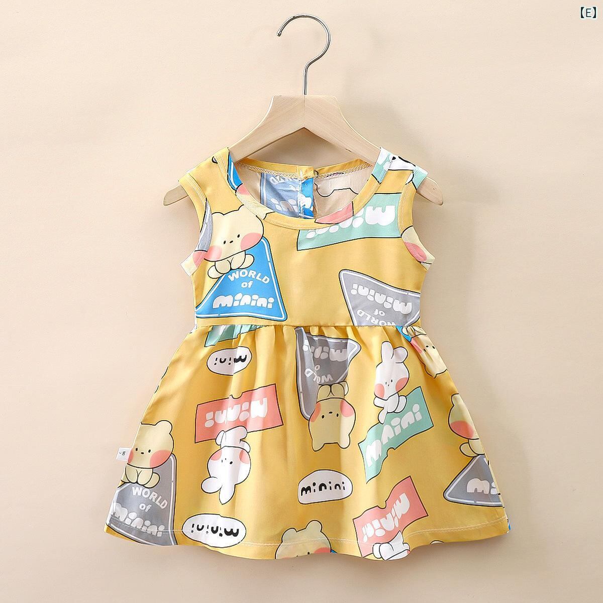 ワンピース 女の子 ベビー キッズ 夏服 カジュアル ノースリーブ 再生繊維 Aライン プリンセスドレス カートゥーン柄 ドット柄 幼児 園児 小学生 通気性 涼しい 吸汗速乾 ルームウェア 普段着 お出かけ