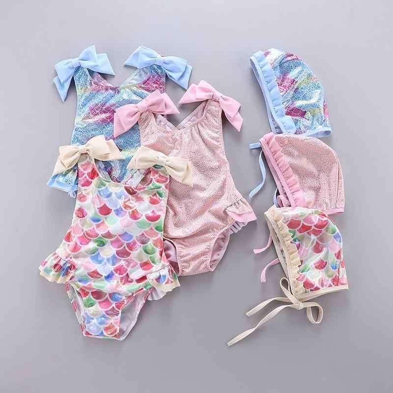 ワンピース水着 キッズ 女の子 七色プリント レインボー柄 マルチカラー スイムキャップ付き ポリエステル製 高伸縮性 プール 海水浴 レジャー スイミングウェア かわいい おしゃれ