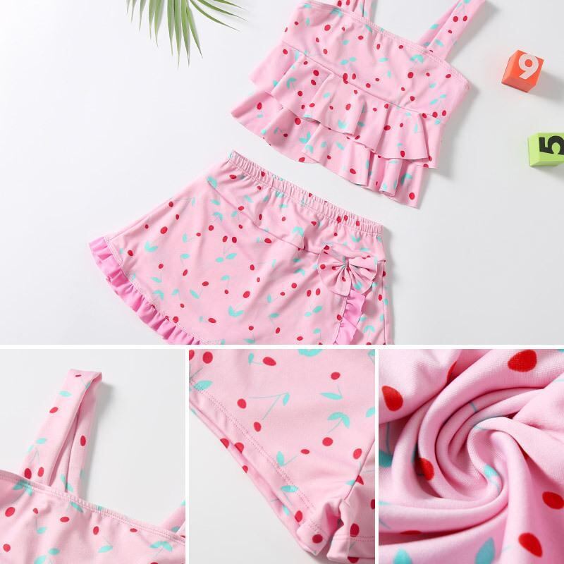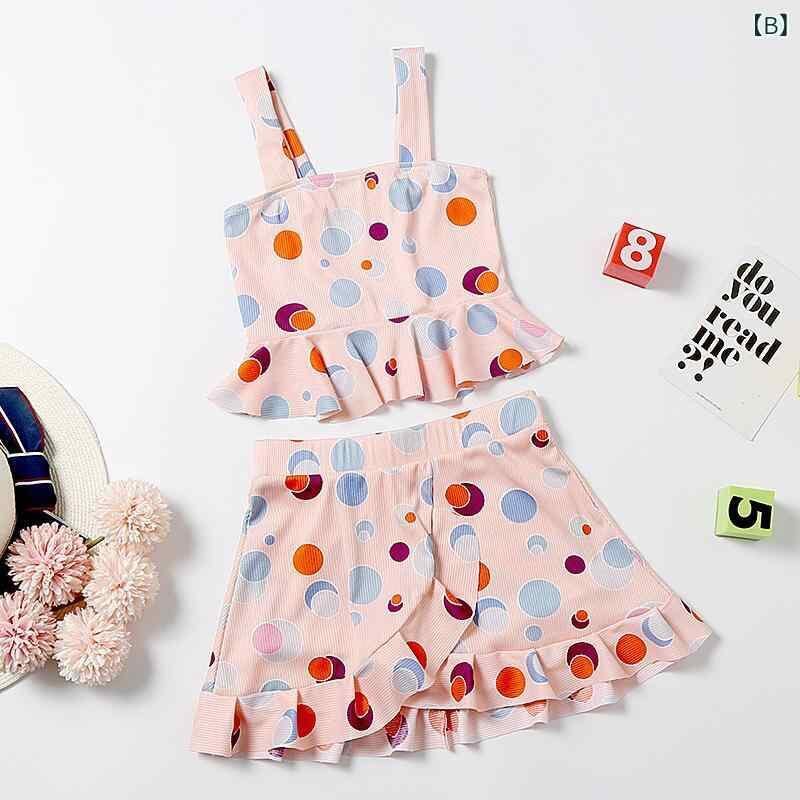 水着 キッズ 女の子 ドット柄 ノースリーブ スカート セパレート 2点セット かわいい 高伸縮性 さわやか 再生繊維 ポリエステル プール 海水浴 マリンスポーツ ピンク 黄色