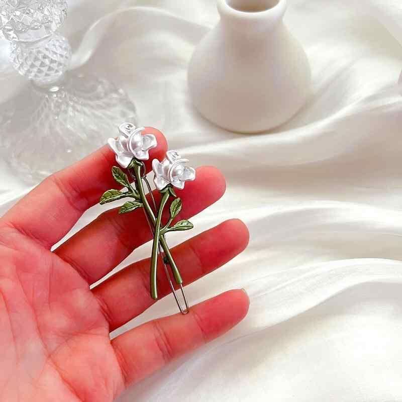 アクセサリー レディース 白いバラ ブローチ ピアス イヤリング レトロ フレンチ エレガント ロマンティック フラワーモチーフ 合金製 焼き付け塗装