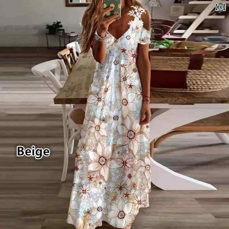 ワンピース レディース レース Vネック 花柄 プリント プルオーバー Aライン ロング丈 マキシ丈 ゆったり 体型カバー ポリエステル エレガント カジュアル リラックスフィット