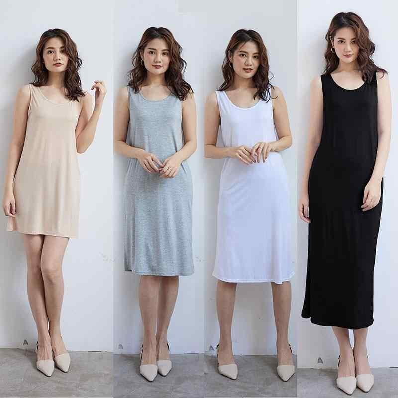 ワンピース レディース インナー スリップ キャミソール 透け防止 モダール ミディ丈 ロング丈 大きいサイズ ゆったり 重ね着 ルームウェア ナイトウェア ブラック ホワイト グレー ベージュ ブルー ブラウン