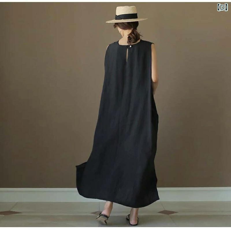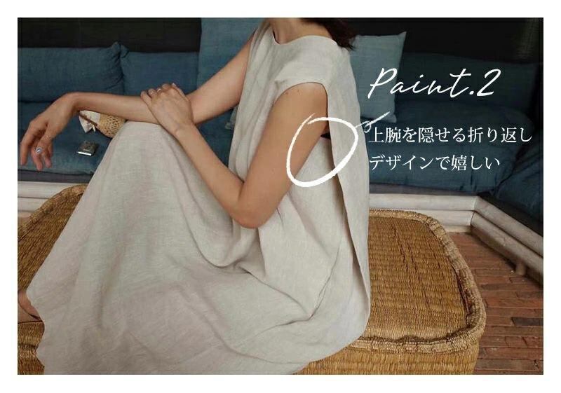 ワンピース レディース 即納 上質 コットン ロング丈 ノースリーブ ゆったり 体型カバー クルーネック ナチュラル シンプル カジュアル エレガント 普段使い オフィス 多色展開
