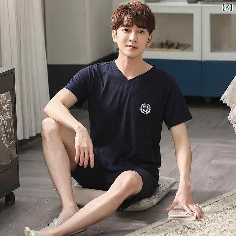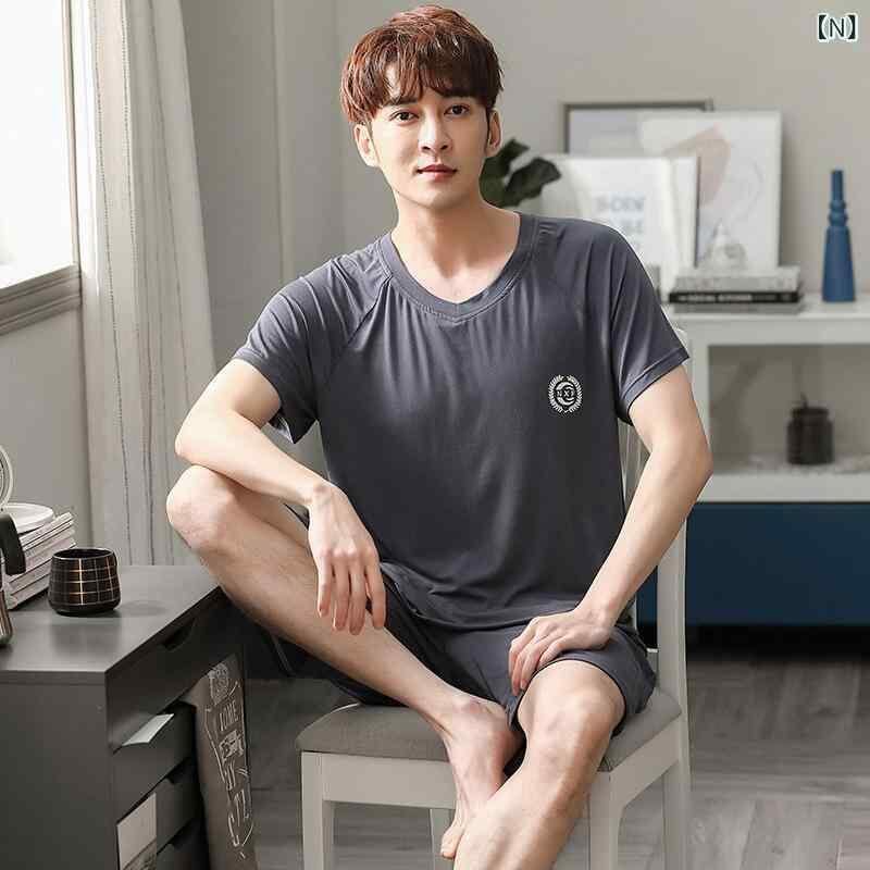 パジャマ メンズ 男性用 モダール 接触冷感 五分袖 ショートパンツ セットアップ 夏用 ルームウェア 上下セット 丸首 薄手 通気性 ストレッチ 快適 ひんやり リラックスウェア 部屋着 普段使い おうち時間