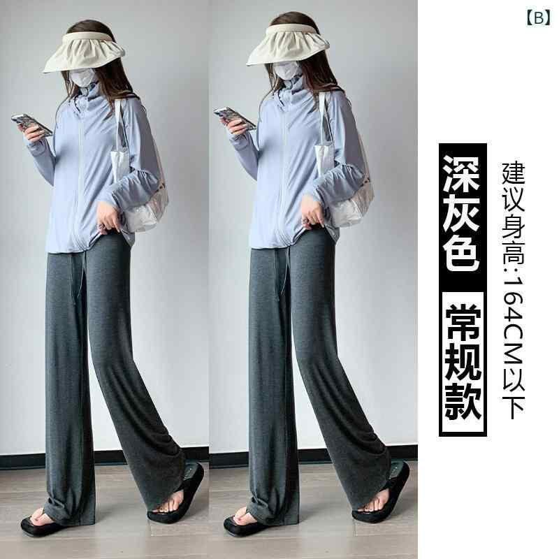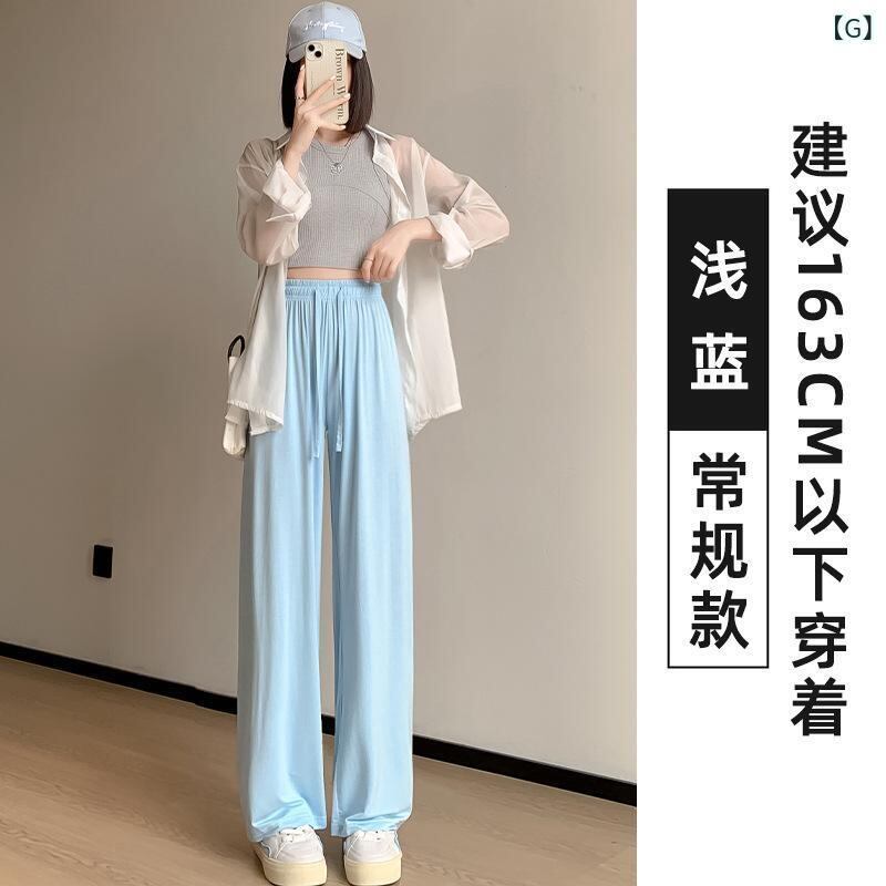 パンツ レディース モダール繊維 ワイドパンツ ストレートパンツ 夏用 薄手 ハイウエスト ゆったり ドレープ感 UVカット ロング丈 無地 カジュアル リラックス ボトムス 普段使い ルームウェア 高弾性 ブラック グレー ピンク ブルー