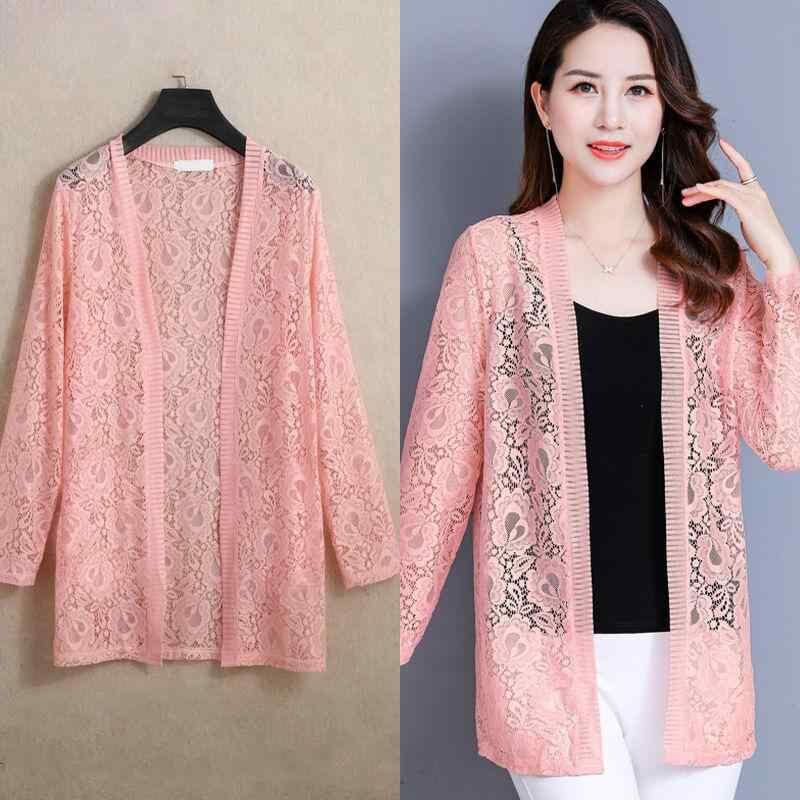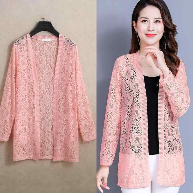 カーディガン レディース 女性用 大きいサイズ ゆったり UVカット 日焼け防止 薄手 ミドル丈 長袖 レース コットン リネン 羽織り 通勤 オフィス 普段使い