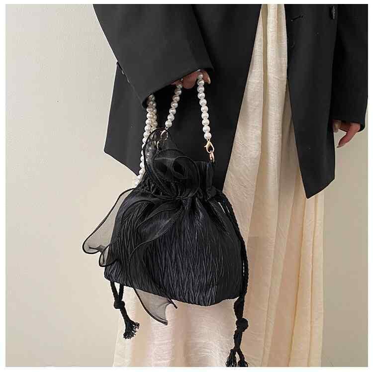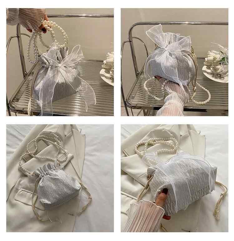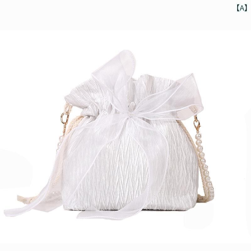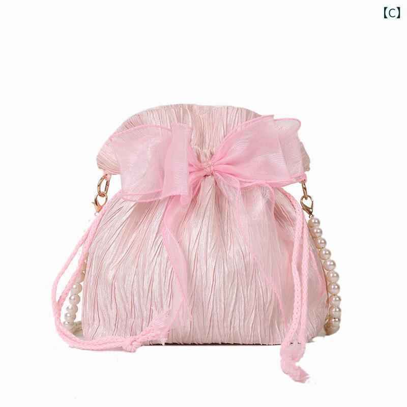 ショルダーバッグ レディース バケットバッグ パール プリーツ 巾着 ドローストリング PUレザー ソフト ミニ コンパクト 斜め掛け 肩掛け 大人かわいい きれいめ カジュアル トレンド ライク ファッション 夏 サマー デイリー お出かけ 普段使い