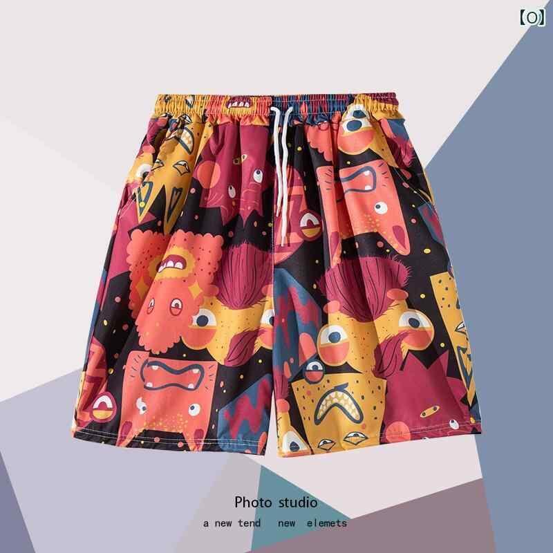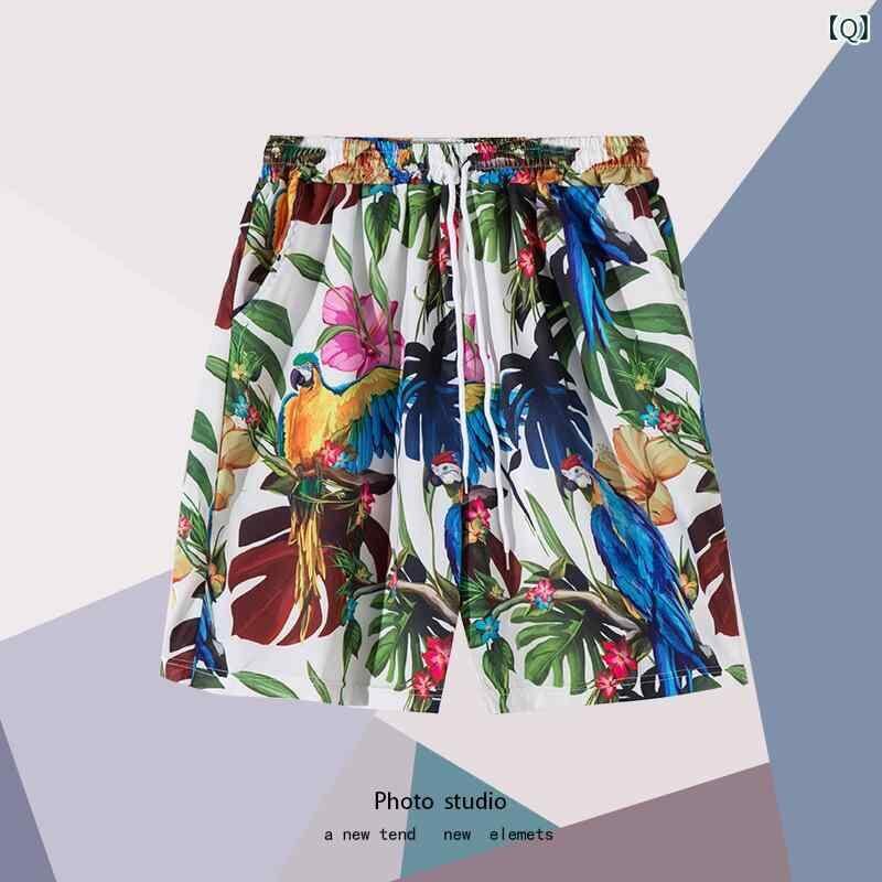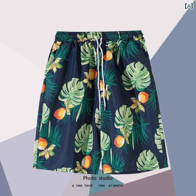 ショートパンツ メンズ カジュアル 夏用 花柄 総柄 アロハ柄 カップル ペア ビーチパンツ 水陸両用 ゆったり ルーズフィット スポーツ ハーフパンツ 膝丈 大きいサイズ ポリエステル