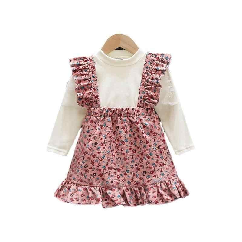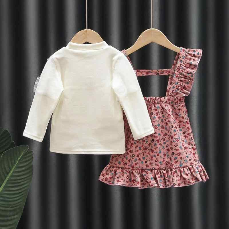 ジャンパースカート 女の子 キッズ ベビー 子供服 秋 春 韓国風 プリンセス風 小花柄 長袖ブラウス 2点セット セットアップ コーデュロイ 綿混 柔らかい肌触り 上品 かわいい お出かけ 普段着