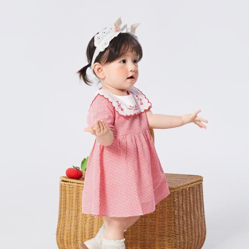 ワンピース 女の子 ベビー キッズ 子供用 綿 コットン 天然素材 プリンセス風 ドレス Aライン チェック柄 スウィート ガーリー 爽やか 上品 エレガント 夏物 お出かけ 普段使い