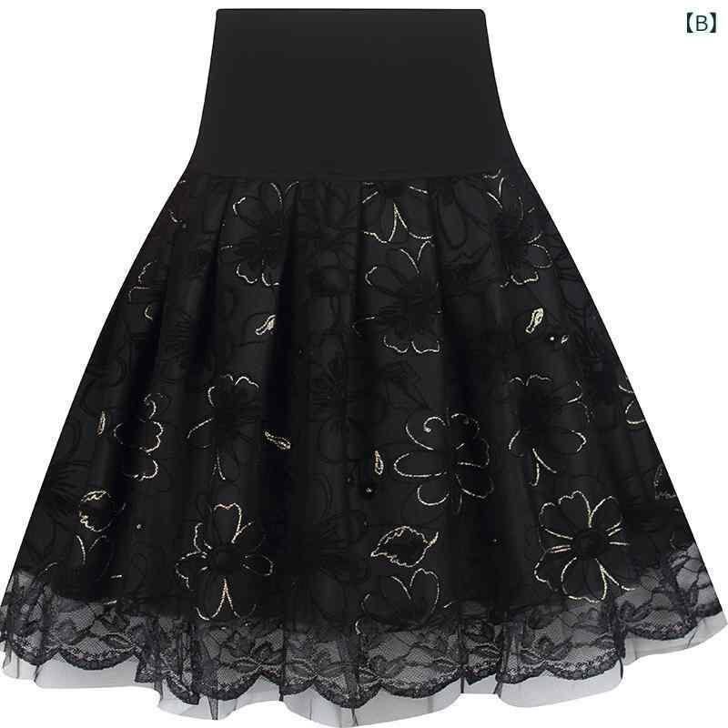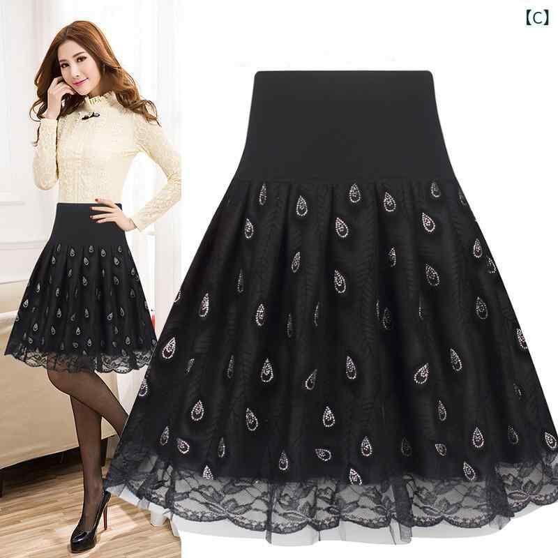 スカート レディース フロッキー花柄 チュール プリーツスカート ミディ丈 ミモレ丈 ウエストゴム ハイウエスト ポリエステル素材 ふんわり フレア 大きいサイズ 着痩せ効果 通勤 オフィス エレガント