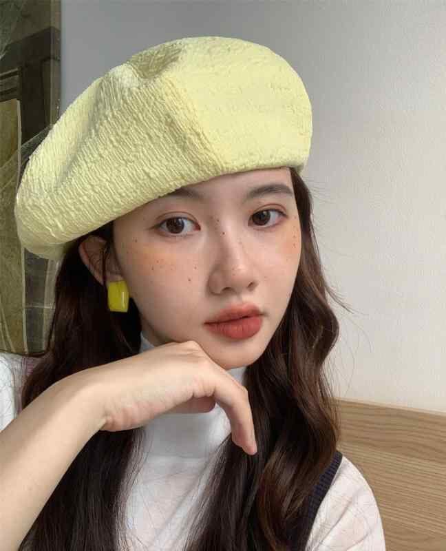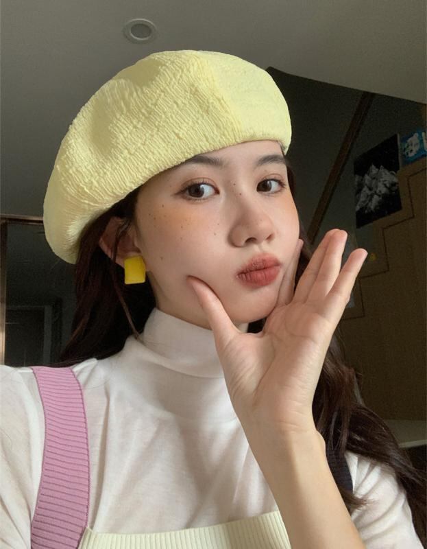 ベレー帽 レディース 春夏 小顔効果 シアー素材 ギャザーデザイン 画家帽風 おしゃれ 紫外線対策 日よけ 若見え 肌映え クリームイエロー ラズベリーレッド