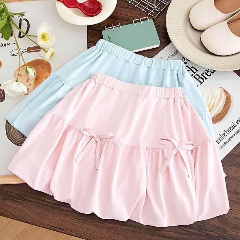 スカート キッズ 女の子 プリンセス リボン フレアスカート ショート丈 かわいい 韓国風 お出かけ 普段使い 速乾 ポリエステル ピンク ブルー やわらか素材