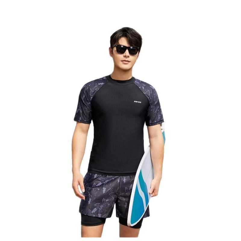 水着 メンズ 男性 セパレート 2点セット ツーピース 大きいサイズ ゆったり ビッグサイズ 日焼け防止 UVカット ラッシュガード スイムパンツ 水泳 プール 海 ビーチ マリンスポーツ フィットネス ジム スポーツ 無地 ナイロン素材