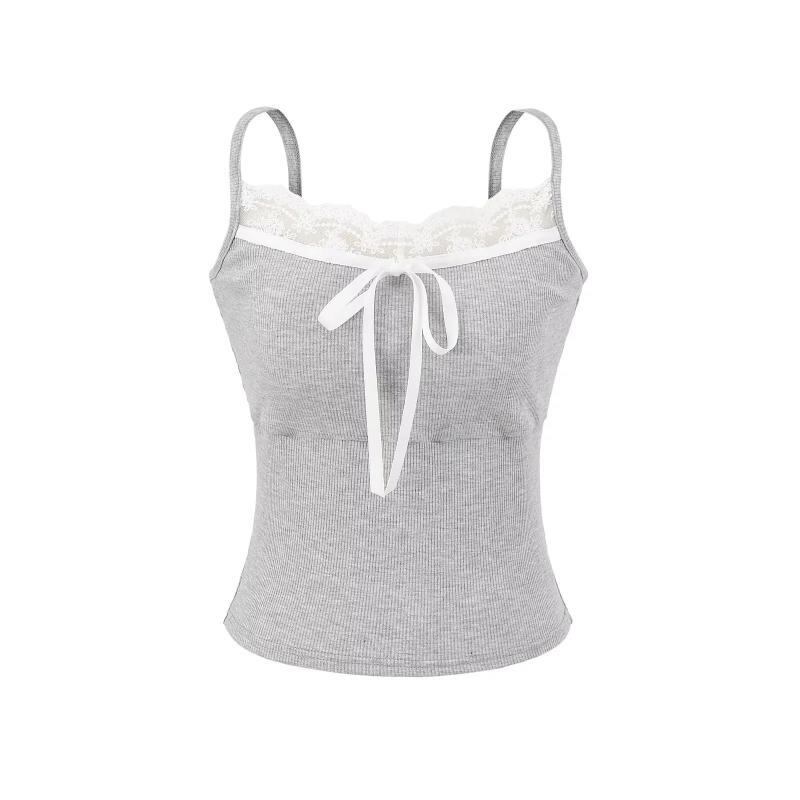 キャミソール レディース クマ柄 小花柄 レース 甘辛 スウィート タイト スリムフィット ノースリーブ ショート丈 コットン 綿 ストレッチ 高伸縮性 インナー トップス