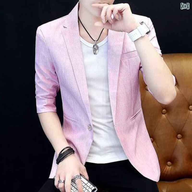 ジャケット メンズ カジュアル 七分袖 薄手 軽量 シングルブレスト スタンドカラー 夏 アウター ビジネスカジュアル オフィスカジュアル デイリーユース 普段使い スタイリッシュ アセテート繊維 混紡素材
