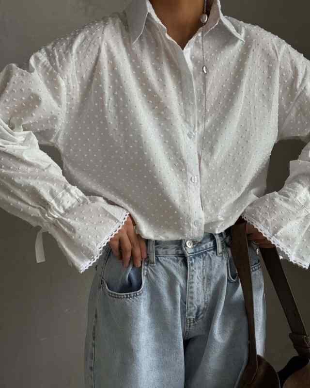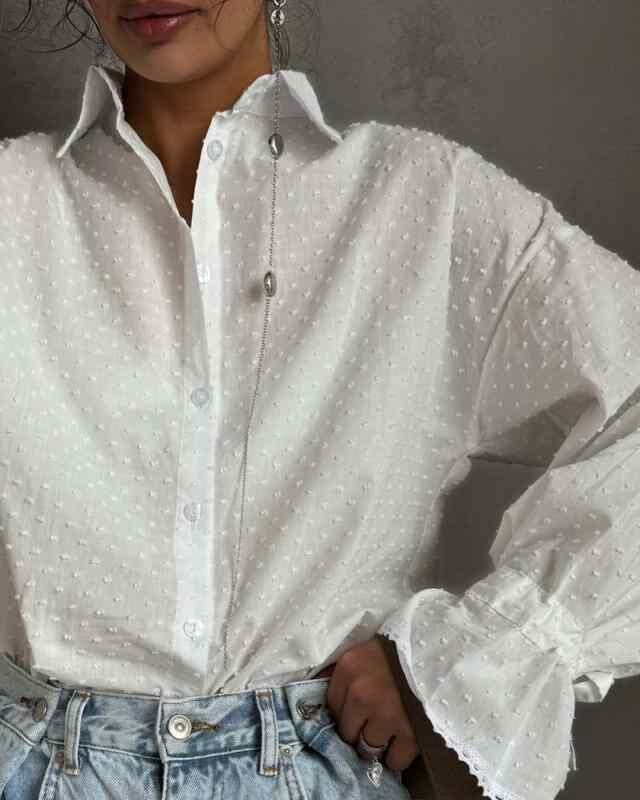 シャツ レディース 綿 ストリート 大人カジュアル シングルブレスト 前開き 長袖 フレアスリーブ ベルスリーブ ゆったり ルーズフィット トップス カーディガン ホワイト 襟付き