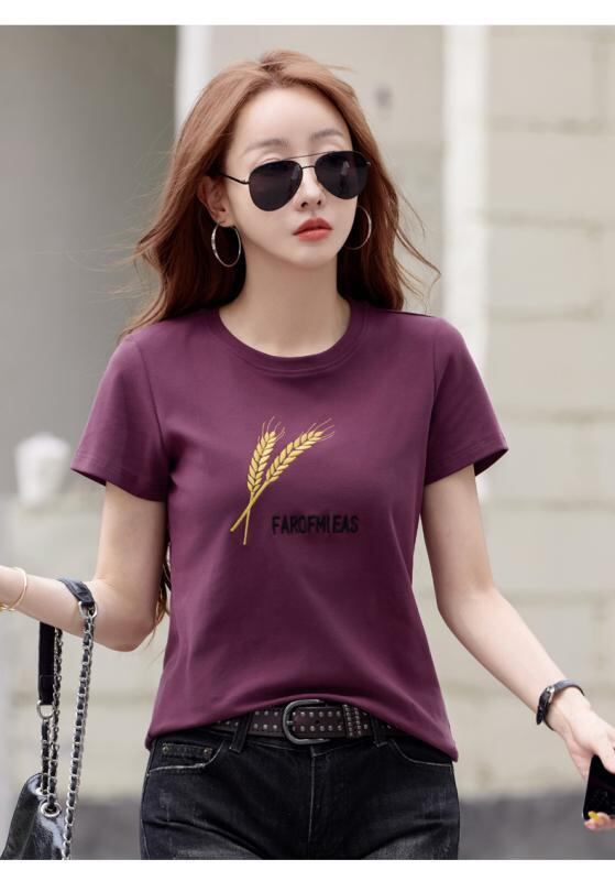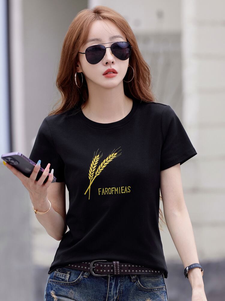 Tシャツ レディース 半袖 丸首 刺繍 花柄 ボタニカル柄 シンプル スリムフィット カジュアル 普段使い デイリー リラックス 綿 コットンブレンド プルオーバー トップス