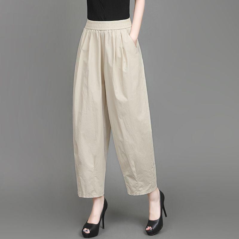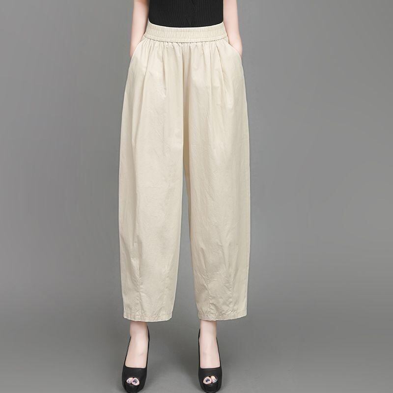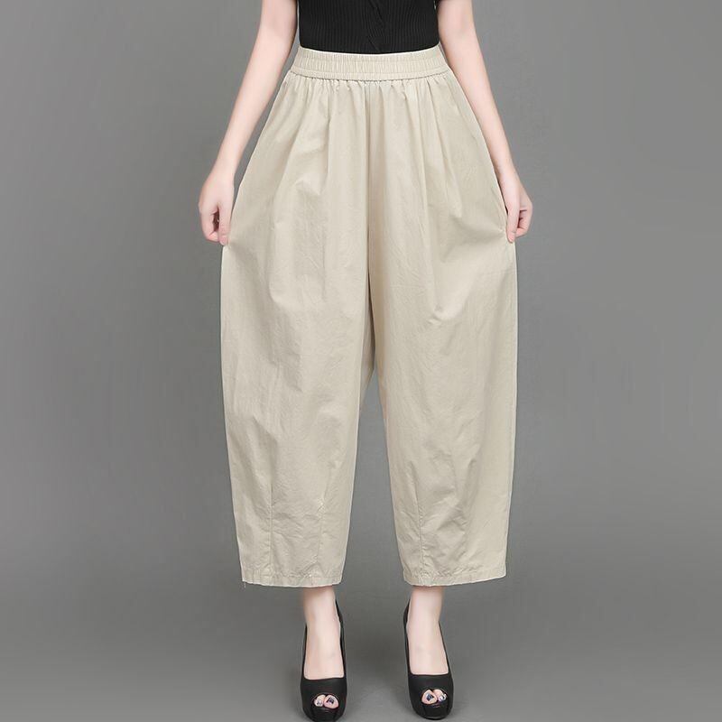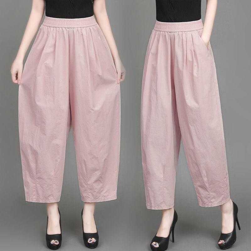 パンツ レディース 大きいサイズ 薄手 ハイウエスト ゆったり ワイド ランタンカーゴパンツ クロップド アンクル丈 カジュアル 体型カバー 着痩せ シェニール スパンデックス 伸縮性 アプリコット ピンク ホワイト ブラック