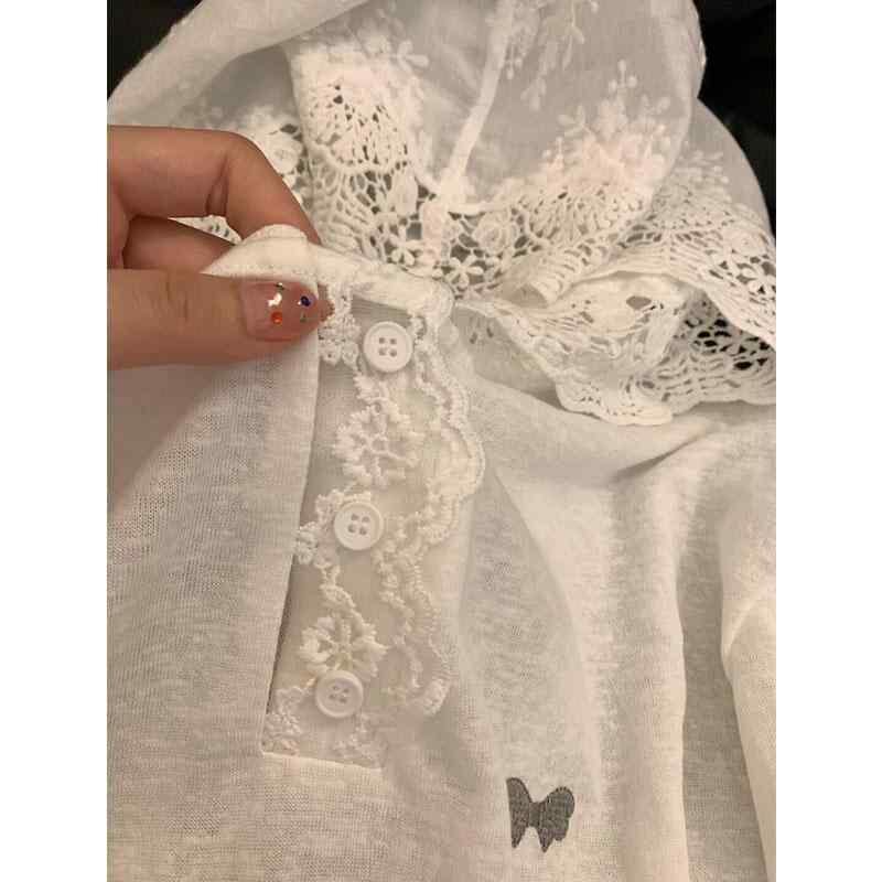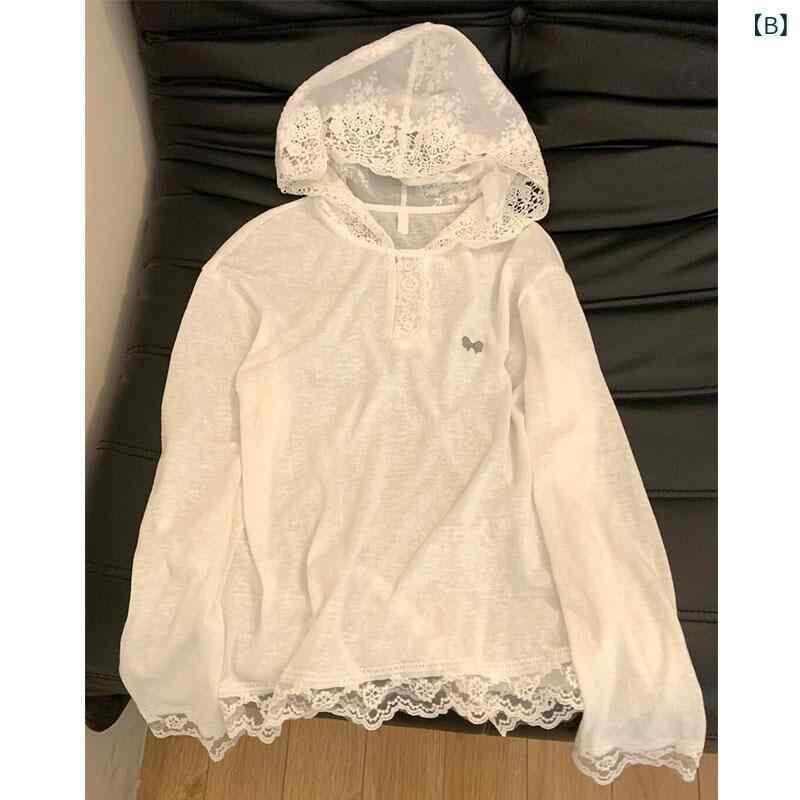 パーカー レディース フード付き 長袖 レース 切り替え パフスリーブ ゆったり ルーズ UVカット 日焼け対策 シアー 透け感 アメリカンカジュアル 大人女子 きれいめ 個性的 トップス ホワイト