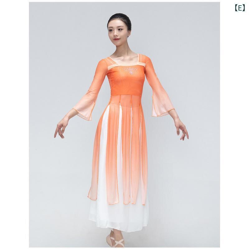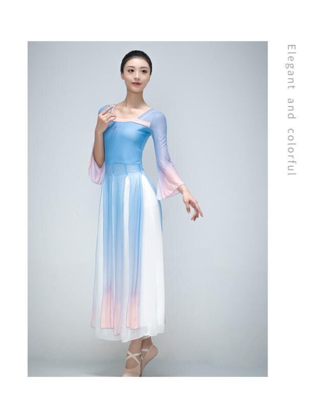 ダンス 衣装 レディース キッズ クラシックダンス モダンダンス 民族舞踊 練習着 発表会 ステージ パフォーマンス ウェア 優雅 エレガント シアー グラデーション メッシュ ワンピース 軽やか ふんわり 快適な着心地 コットン 綿素材