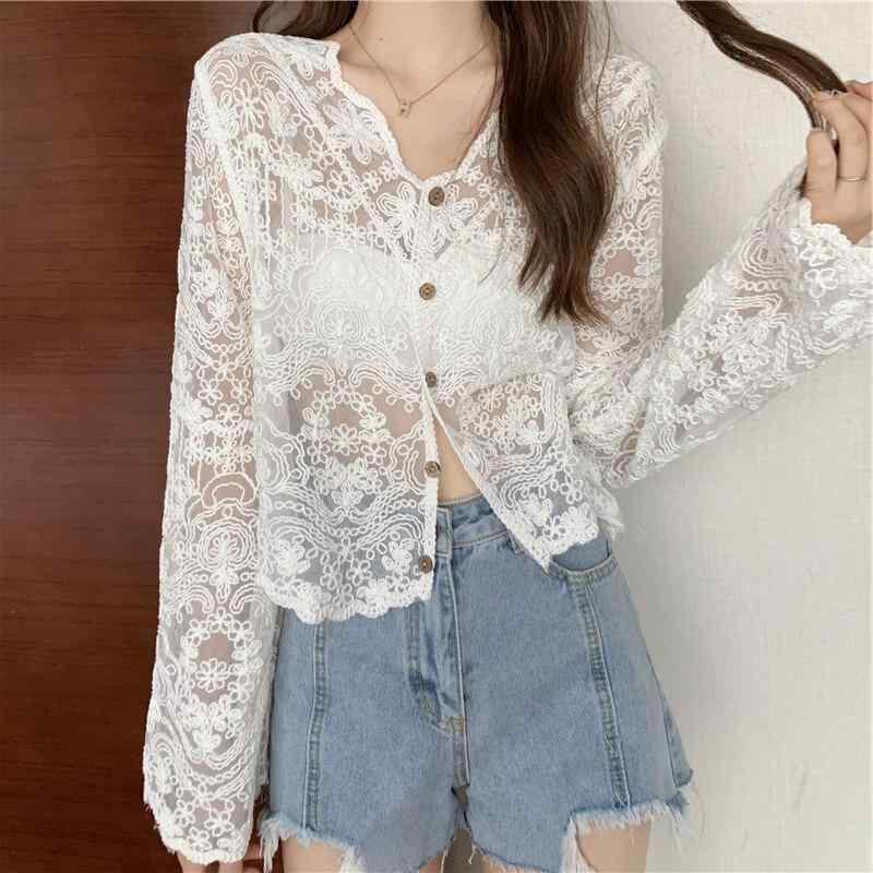カーディガン レディース UVカット 薄手 ゆったり ルーズ 長袖 メッシュ レース 透かし編み ショート丈 羽織り トップス ストレートシルエット 伸縮性 無地 ラウンドネック カジュアル ホワイト アプリコット