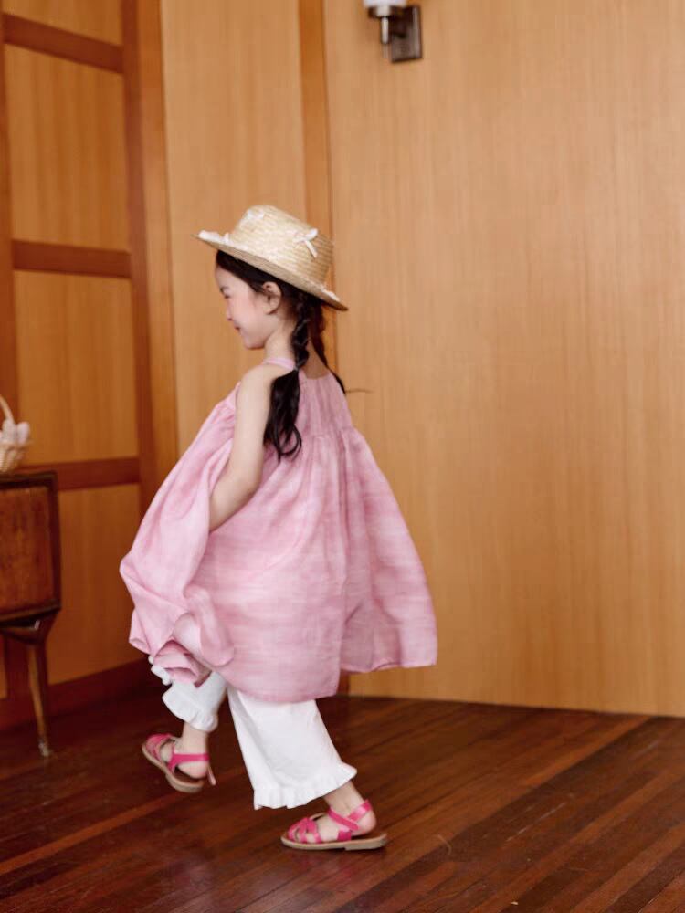 ワンピース 女の子 キッズ 綿 コットン ピンク グラデーション タイダイ染め 刺繍 レース キャミソール Aライン カジュアル 夏服 普段使い 部屋着 柔らかい 肌触り良い