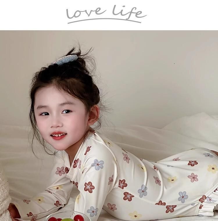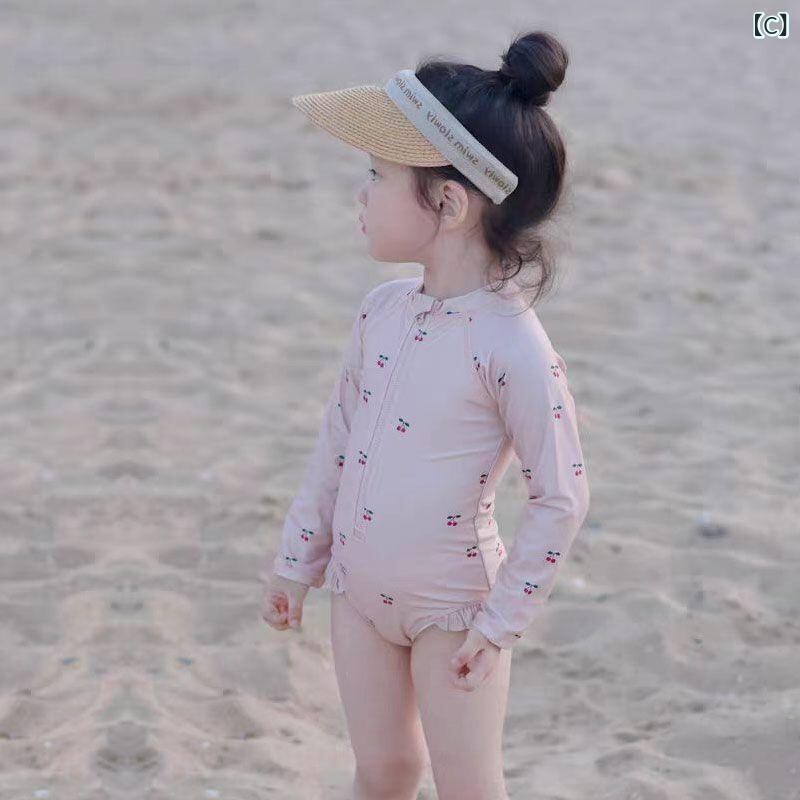 水着 キッズ 女の子 ベビー ガールズ ワンピースタイプ 長袖 ロングスリーブ UVカット 日焼け防止 紫外線対策 速乾 花柄 フラワー ボタニカル柄 かわいい おしゃれ プール 海水浴 夏 水遊び レジャー ポリエステル ポリウレタン素材