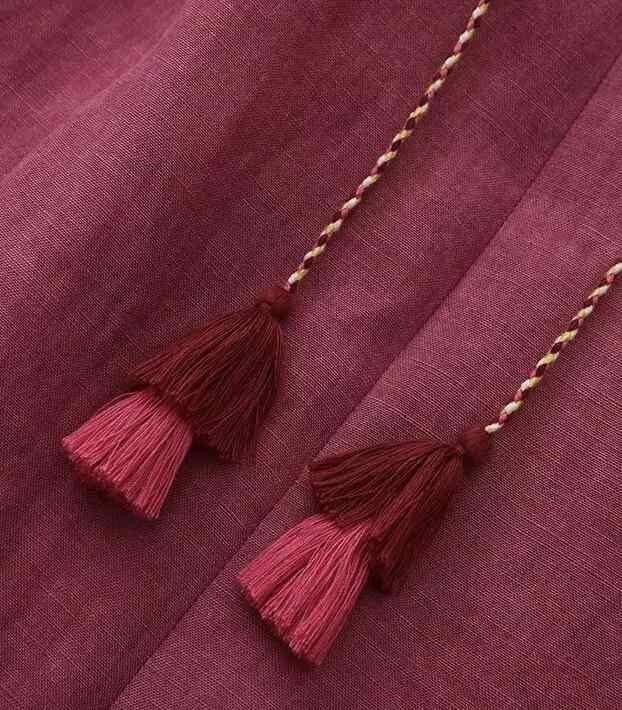 ・カテゴリ: ワンピース・スタイル: 通勤・主な素材: 麻95%以上・ネックライン: Vネック・袖丈: 半袖・袖タイプ: レギュラー・丈: ミディ丈・カラー: プラム・サイズ展開: S、M