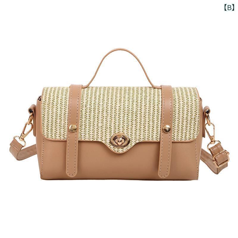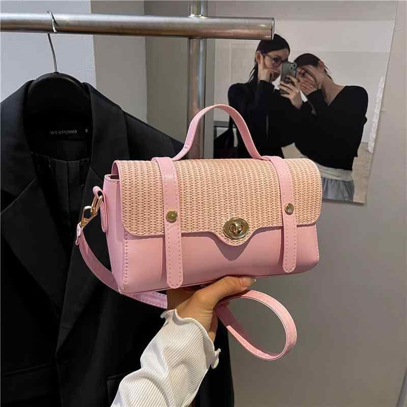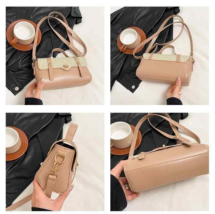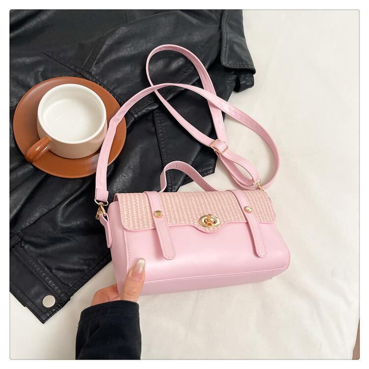 バッグ レディース トレンド 個性的 PUレザー ソフトレザー 編み込み 異素材MIX 韓国風 ハンドバッグ ショルダーバッグ バゲットバッグ 円筒型 かわいい 上品 デイリーユース 普段使い お出かけ ホワイト カーキ ブラック ピンク