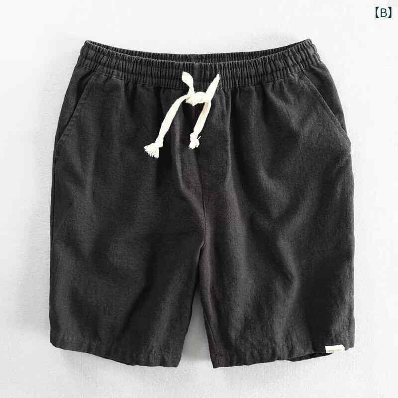 ・主な素材: 麻80%・パンツ丈: ハーフ丈・パンツシルエット: ストレート・スタイル: 韓国風・適用シーズン: 夏・カラー展開: 麻色、ブラック、コーヒー、アッシュグリーン、テラコッタ、ダークブルー・サイズ展開: M、L、XL、XXL、3XL