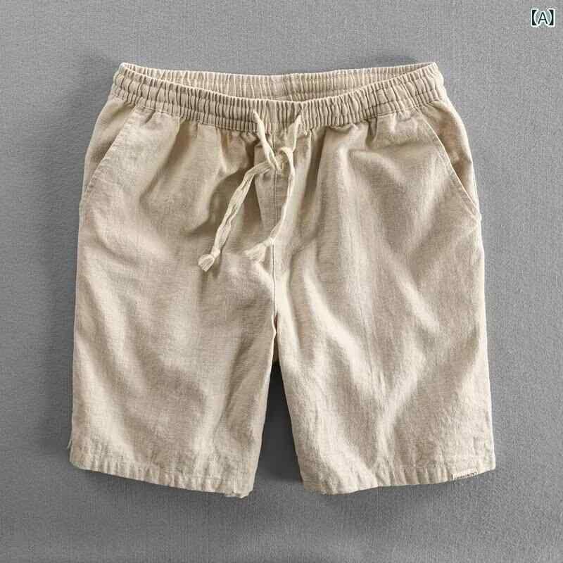 5分丈パンツ メンズ 薄手 麻 リネン 韓国ファッション ゆったり ルーズフィット カジュアルパンツ 通気性 吸湿速乾 スポーツ アウトドア 綿麻 ストレートシルエット カーキ ベージュ ブラック ブラウン グレー ネイビー レッド
