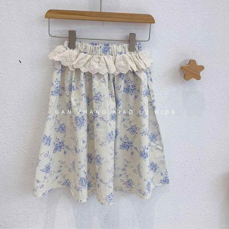セットアップ キッズ 女の子 花柄 レース フリル襟 パフスリーブ 半袖 シャツ スカート 夏 2点セット 再生繊維 スウィート ソフトな肌触り 普段使い お出かけ カジュアルスタイル